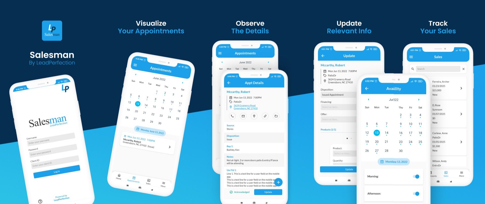 Mobile app designed specifically for customers who use the LeadPerfection CRM to schedule in-home estimates for home services or home remodeling.